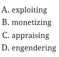 Exploiting: Taking advantage of something (a situation, resource, or person), often in a selfish or unfair way.